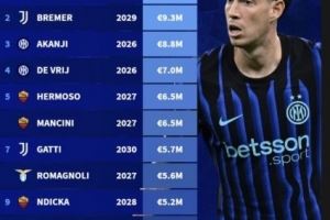 体育资讯9月26日讯 德国转会市场盘点了意甲中卫税前薪资情况,国米的巴斯托尼以1020万年薪居首,尤文的布雷默以930万欧元年薪位居次席。值得一提的是,国米新援阿坎吉以880万欧元位居第三位。